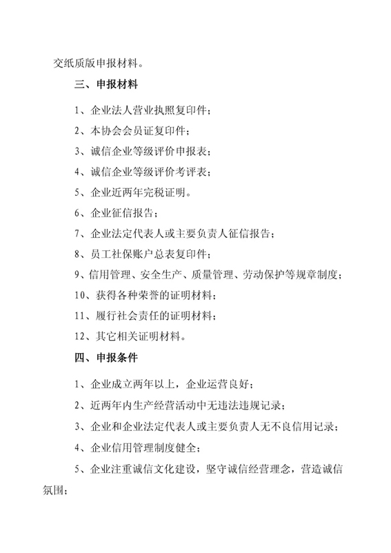 3、誠(chéng)信企業(yè)等級(jí)評(píng)價(jià)申報(bào)表;