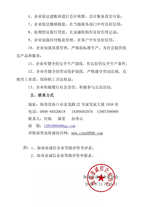 附件:1、海南省誠(chéng)信企業(yè)等級(jí)評(píng)價(jià)考評(píng)表;