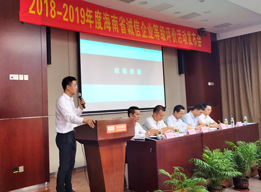 “2018-2019年度海南省誠信企業等級評價”活動發布會昨天(16號)在海口正式啟動。這一活動旨在進一步推動我省社會誠信體系建設,為海南自貿區(港)建設營造良好的營商環境,此項工作得到省政府信用主管部門的支持。
