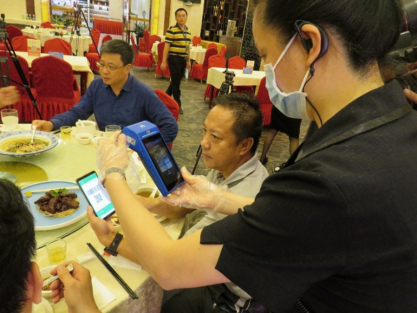在龍泉人漁村,姚磊巡視員一行遵照疫情防控期間堂食要求,接受體溫測量后,進店察看防控措施,深入第一線了解餐飲企業(yè)復工復業(yè)過程中的困難與訴求,實地體驗餐飲業(yè)恢復經(jīng)營的情況。隨后,一行隔位而坐,進行堂食用餐,點了“文昌雞、糟粕醋”等海南招牌菜肴,積極響應“公筷行動”,王磊副市長等均對桌上的海南特色菜肴贊不絕口,用餐過后,一行就人均100余元的餐費自費微信掃碼結(jié)賬。