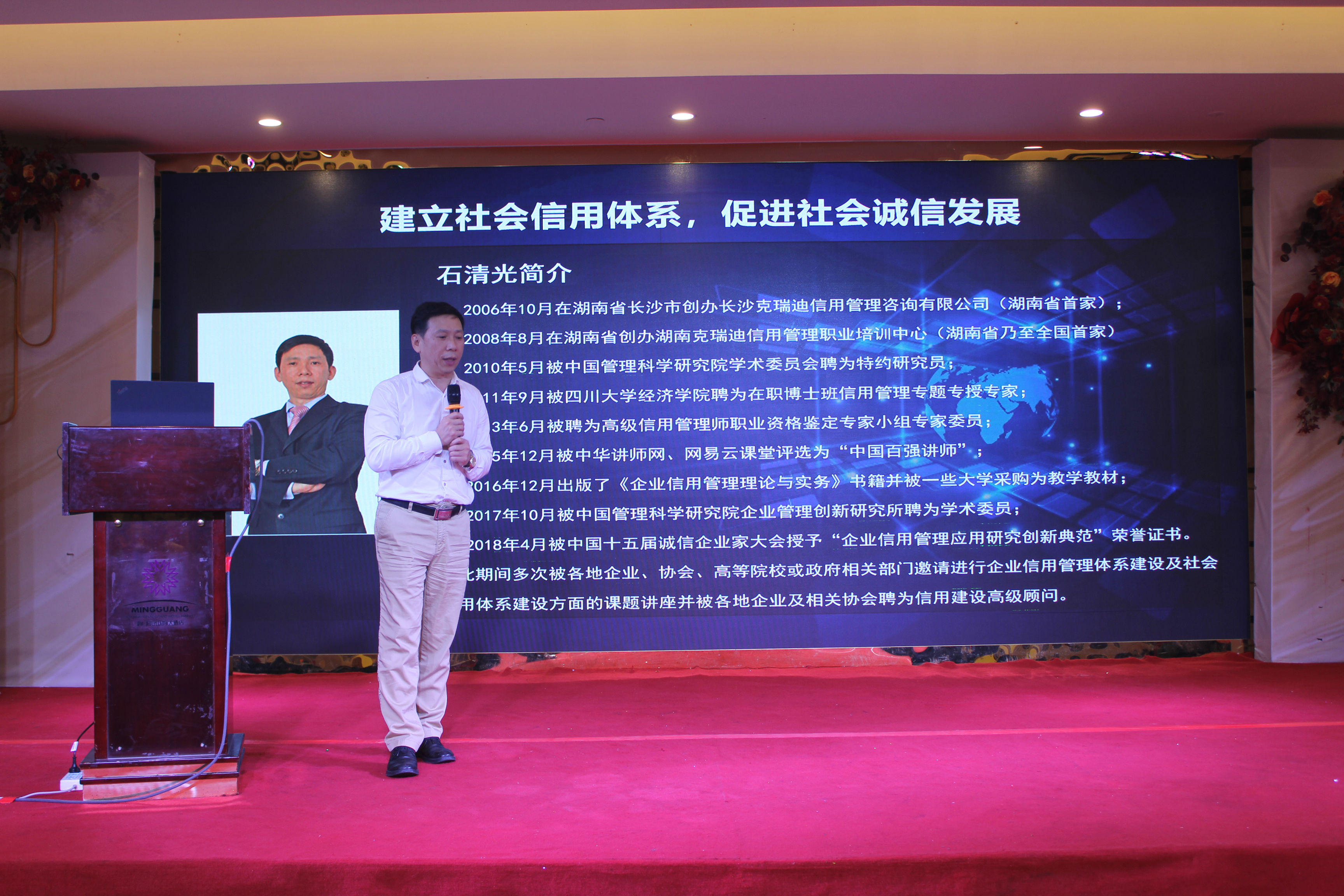 中國百強講師、企業信用管理應用研究創新典范、信用管理專題專授專家石清光老師結合海南自貿港建設為大家解析企業如何誠信守法經營,如何防患財務信用風險,如何融入誠信體系,讓在座的企業家認識了誠信價值的重要性。而在現代經濟中,誠信不僅僅是一種道德規范,也能夠為企業帶來實實在在經營成本的降低及經濟效益的提升。