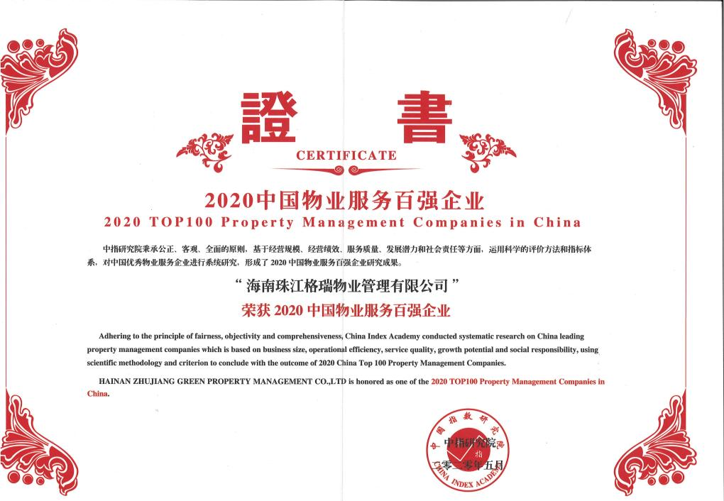 2010年獲國家一級物業服務企業資質,2016年評為海南省物業行業前10強企業,2017年榮膺海南省物業行業唯一的省級誠信示范企業,2018年成為全國物業行業百強企業,并連續三年蟬聯進位百強榜單。2020年當選海南省物業管理協會第五屆“常務副會長單位”,榮膺“2020年度全國政府采購百強物業管理服務商”稱號。