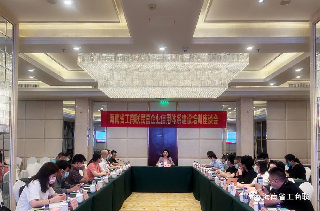 10月28日上午,為增強民營企業信用意識和信用管理水平,加快推進信用修復,海南省工商聯在海口舉辦了民營企業信用體系建設培訓座談會。海誠協會長孫秀山、副會長周勤富和石宜伽參加了此次培訓,石總和周總代表省誠協介紹企業誠信建設先進經驗,本次培訓共計40余名省工商聯執常委企業、商協會會員代表參加。