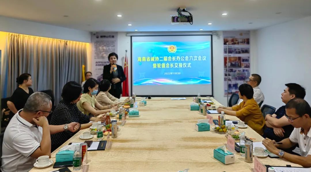 11月3日下午,海誠協二屆會長辦公會六次會議暨輪值會長交接儀式在副會長單位海南閩泉山石業有限公司會議室勝利召開。顧問蔡澤進、廖勇,會長孫秀山、監事長談德榮、常務副會長王康華、李潤等核心領導出席會議。9-10月輪值會長李詠婷(代表博眾集團唐明山董事長)做了輪值工作總結;完成了輪值工作交接儀式;11-12月輪值會長廖勇(誠協顧問兼講師)和呂翹羽(海南閩泉山石業有限公司總經理)做了2022年度最后兩個月的輪值工作計劃,內容非常豐富;與會領導對協會工作各自發表了意見和建議,集體討論了協會制度化管理、會員創新服務、和第三方合作發展等議題,取得了共識,堅定了發展信心;