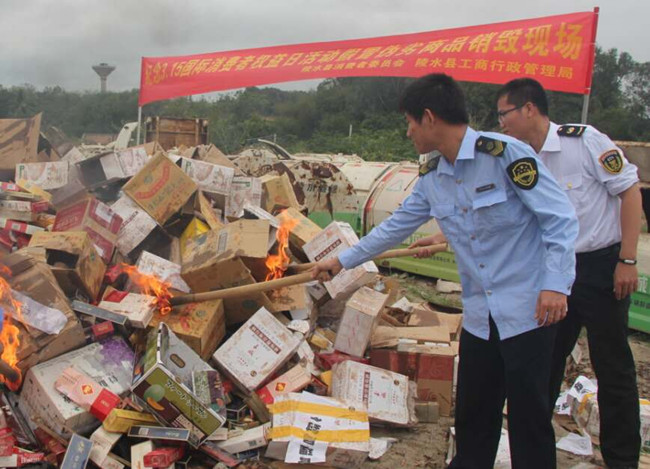 三亞、陵水、萬(wàn)寧等地市縣局公開銷毀查獲的價(jià)值上百萬(wàn)元假冒偽劣食品藥品,東方市局通過(guò)讓運(yùn)送查獲的、即將銷毀的假冒偽劣食品藥品的車輛“游街示眾”的方式,震懾制售食品藥品不法行為。省食品藥品監(jiān)管部門還通過(guò)在人流量較大的場(chǎng)所設(shè)立咨詢臺(tái)、發(fā)放資料和現(xiàn)場(chǎng)解答的方式向公傳授識(shí)別假劣食品藥品的知識(shí)。