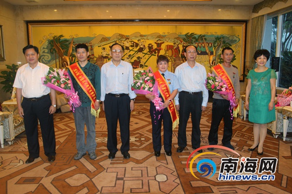 海南3名“全國見義勇為英雄司機”代表和海南相關領導合影。 南海網記者陳望攝