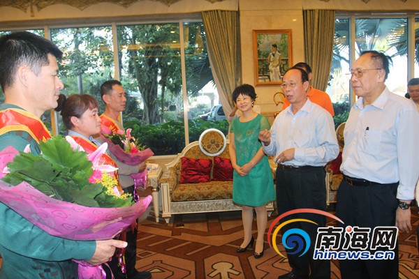 當天下午,海南省見義勇為基金會會長肖若海等海南相關領導都來到海口美蘭機場,歡迎從北京載譽歸來的3名獲獎代表。肖若海代表省見義勇為基金會對獲獎的代表表示祝賀,他表示,獲獎的代表不僅僅是個人的榮耀,還是海南的榮耀,希望他們繼續發揚優良傳統,弘揚民族精神,傳遞社會正能量。