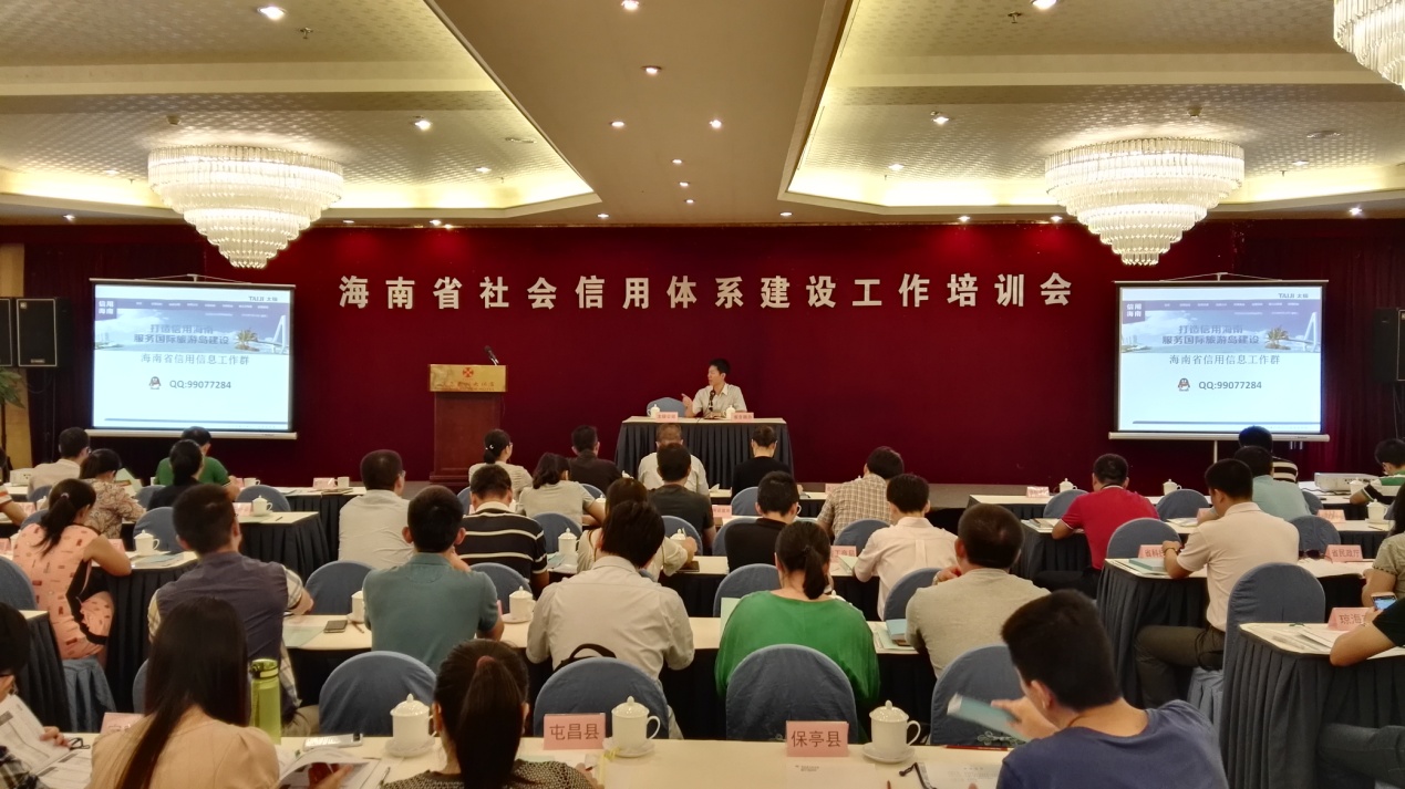 2016年5月25日,海南省社會信用體系建設工作培訓會在海口召開。海南省信用管理辦公室資本信用處主要負責人介紹了近年來從中央到地方對社會信用體系建設工作的有關情況,省級企業信用信息平臺承建方專業講師對信用信息報送系統的操作方法進行講解,與會人員進行了充分的交流。海南省社會信用體系建設聯席會議成員單位相關處室的負責人和信息報送人員、各市縣政府牽頭部門負責人和信息報送人員約100余人參加了培訓會。