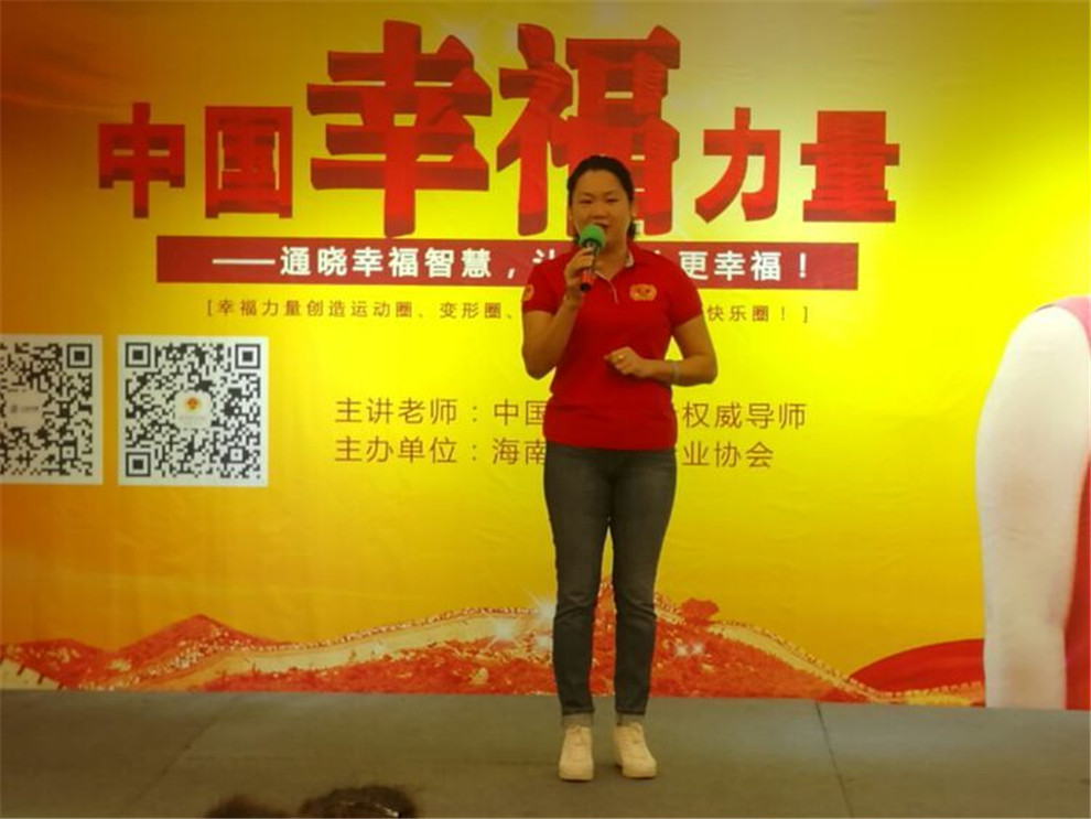 海南誠協(xié)蘇麗娜會長上臺致辭,分享誠信與幸福理念,感謝李念老師的大愛奉獻,對海南誠協(xié)發(fā)展進行規(guī)劃,同時誠協(xié)也將奉獻更多的公益課程回饋社會。