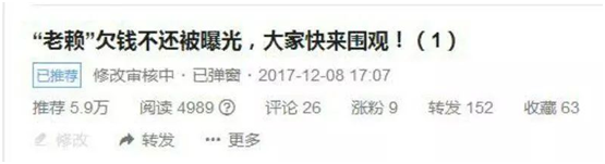 據統計,發布日當天海口中院在互聯網上共曝光首批12位失信被執行人信息。截至9日晚10時,今日頭條共向海南某建筑公司辦公場所周邊5公里范圍內的5.9萬人彈窗推送了該公司的失信信息,近5000人點擊閱讀,20余人評論留言。