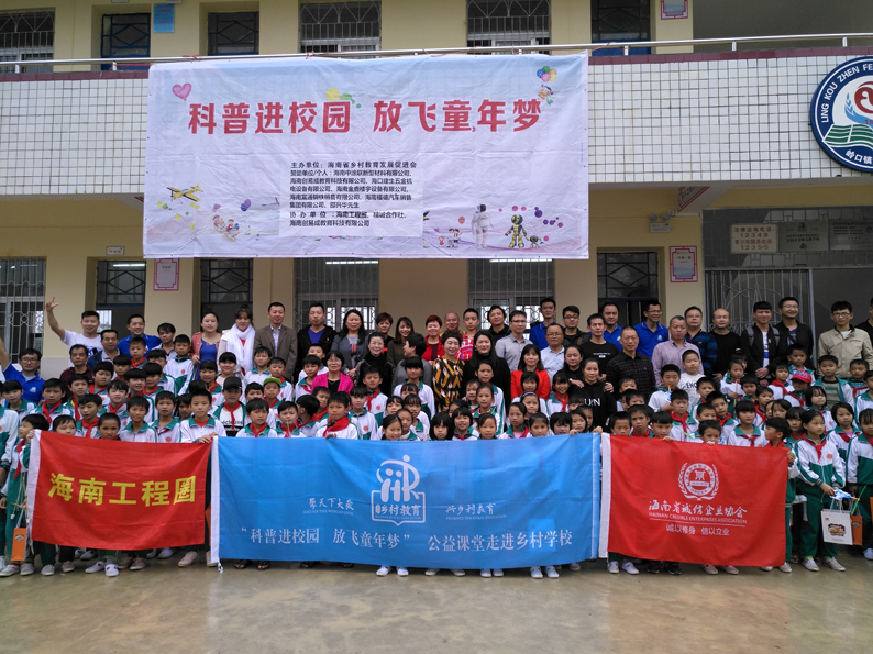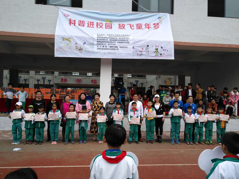 伴著歡快的節(jié)奏,機器人們開始炫酷勁舞,操場上沸騰了,不時爆發(fā)出陣陣掌聲,同學(xué)們也情不自禁地和機器人一道共舞。科普志愿者們?yōu)橥瑢W(xué)們展示了魔幻汽車、3D影像、電流游戲等科普游戲,同學(xué)們又在科普老師的指導(dǎo)下一起制作了橡皮筋動力紙飛機和竹簽不倒翁。隨著一個個紙飛機“嗡嗡”地飛上天,同學(xué)們跳躍歡呼。幾個小時過去了,同學(xué)們依然熱情高漲。隨后,海南省誠信企業(yè)協(xié)會蘇麗娜會長、孫秀山秘書長和其他愛心人士一道為每個小朋友贈送了愛心禮物并勉勵同學(xué)們熱愛科學(xué),努力學(xué)習(xí),報效祖國。午后,愛心志愿者們又趕到定安富文鎮(zhèn)中心小學(xué)繼續(xù)開展科普慈善活動。航模飛行表演、火箭發(fā)射等一系列精彩的科普表演讓同學(xué)們掀起陣陣高潮,小朋友們拿著親手制作的玩具和愛心禮物結(jié)伴而歸,開心不已。精彩的科普活動不僅開啟了小朋友們放飛童年的夢想,也激發(fā)了他們探索科學(xué)的濃厚興趣。